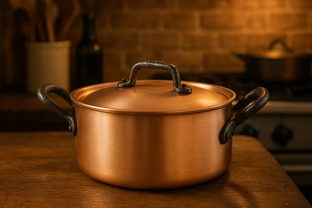 Der Falk Culinair Fusion Fleischtopf mit Deckel 14 cm ist ein hochwertiger Kochtopf, hergestellt in Belgien. Mit einem Durchmesser von 14 cm und einem Fassungsvermögen von 0,7 Litern eignet er sich ideal zum Zubereiten kleinerer Gerichte. Der Fleischtopf besteht aus Kupfer und verfügt über eine Innenbeschichtung aus Edelstahl. Dank seiner Materialstärke von 2 mm ist er besonders langlebig und vielseitig einsetzbar.