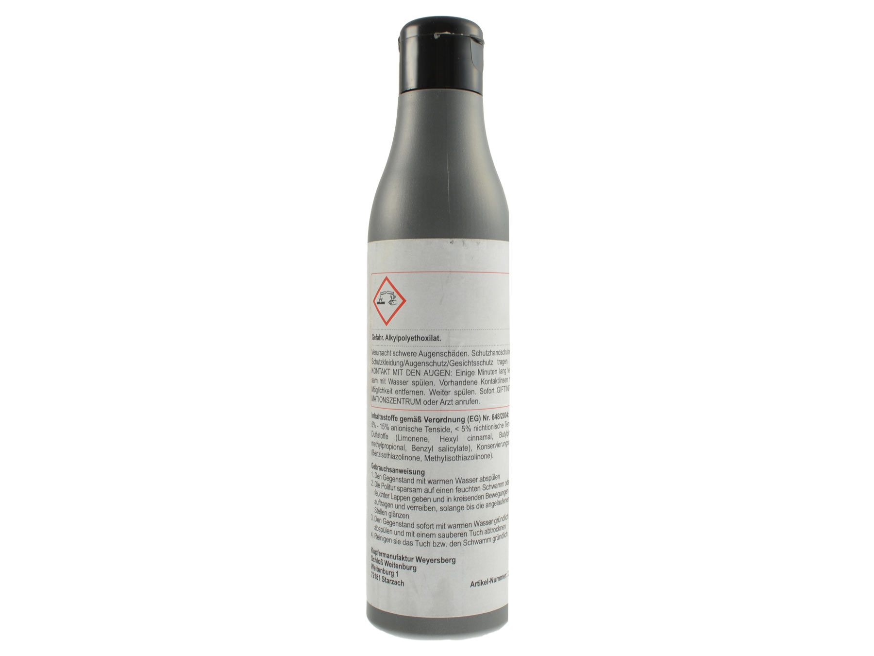 Kupfer & Messing Premium Politur, 200ml. Einreiben, Spülen, Abtrocknen. Die Kupfer- und Messing-Premiumpolitur eignet sich perfekt zur Reinigung von hochglanzpolierten Kupfertöpfen. Zur Reinigung der matten Töpfe / Pfannen empfehlen wir die alternativ erhältliche "Bistro Reinigungscreme".